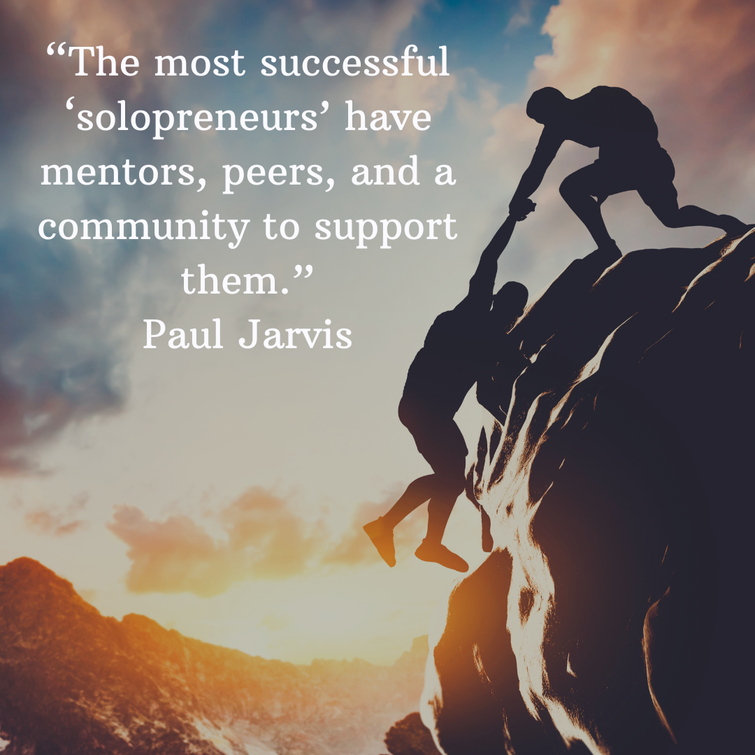 Yes, being a solopreneur (like many of us in mental performance are) often means that you are the one creating the business, ensuring that the business runs smoothly, doing client-facing work, determining how your business will navigate the ups and downs of the field, and what can feel like a million other things. And yet, we don't know a single successful entrepreneur who works completely in isolation.